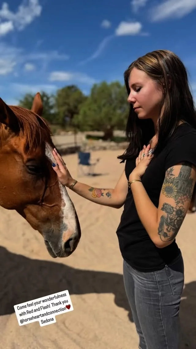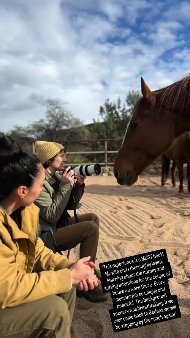 “It was so wonderful to meet you, Red and Flash. To visit your beautiful home and to see all you have created. We had such a magical time! My husband said, “This was the best birthday gift ever.” I am so grateful because in just those few hours with you... you and the horses provided us with awareness and tools that I know will support us for a lifetime! I am so glad to have met you! I appreciate how kind and compassionate you are & how you helped me work through my initial discomfort with the horses and brought me back to trust. Internal trust ❤️ You are a beautiful wild woman. Thank you for modeling that to both of us.”
