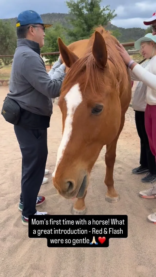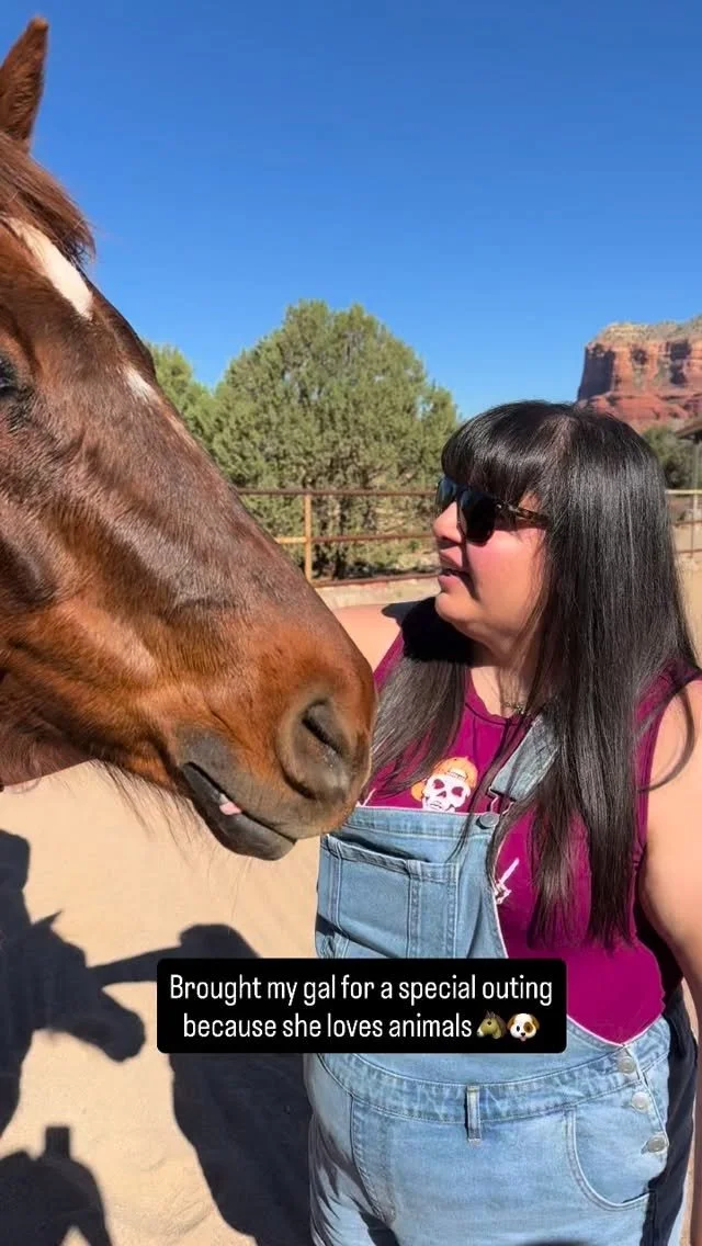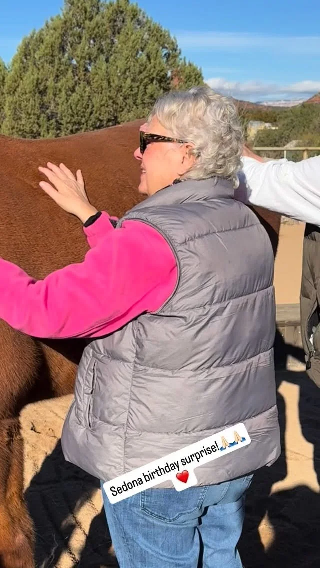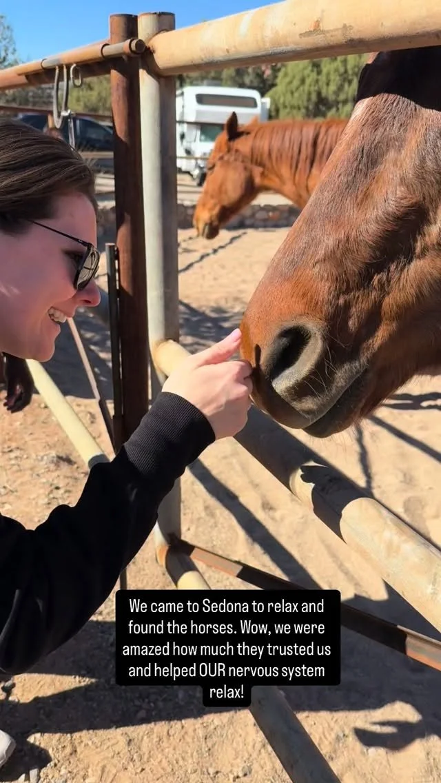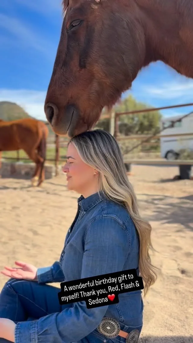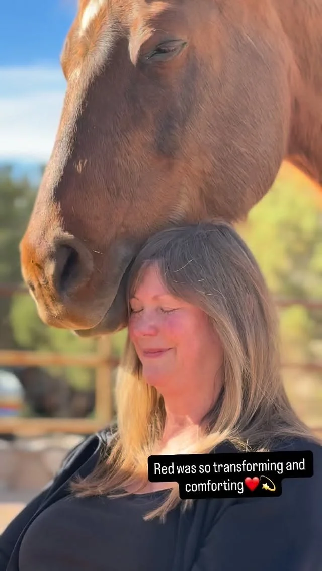 “It was so wonderful to meet you, Red and Flash. To visit your beautiful home and to see all you have created. We had such a magical time! My husband said, “This was the best birthday gift ever.” I am so grateful because in just those few hours with you... you and the horses provided us with awareness and tools that I know will support us for a lifetime! I am so glad to have met you! I appreciate how kind and compassionate you are & how you helped me work through my initial discomfort with the horses and brought me back to trust. Internal trust ❤️ You are a beautiful wild woman. Thank you for modeling that to both of us.”