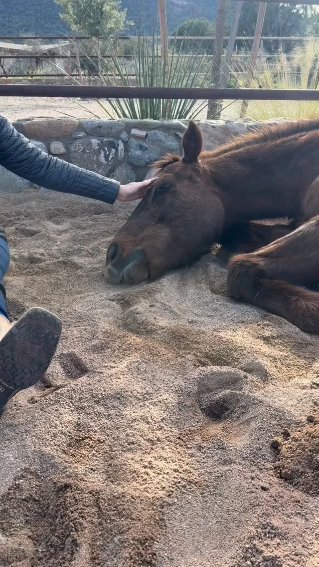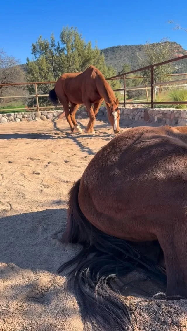 I showed up looking for help with my love/fear relationship with horses and within a short time of Andrea and I being in with the two horses, Red laid down with eyes at half mast and Flash was on the either side yawning. They made themselves vulnerable and calm, creating a space for me and my body to become aware of and relish in this space of safety and calm presence they created for me.