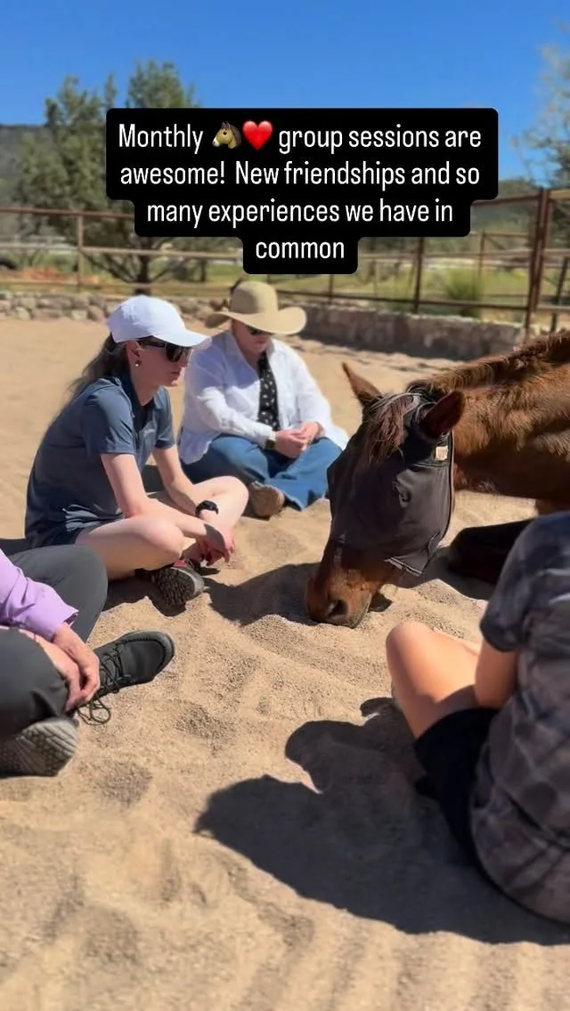 We also offer, a once-a-month, shared group experience, limited to four participants, where we immerse ourselves in nature, get grounded, connect and see what horse wisdom wants to come through.
