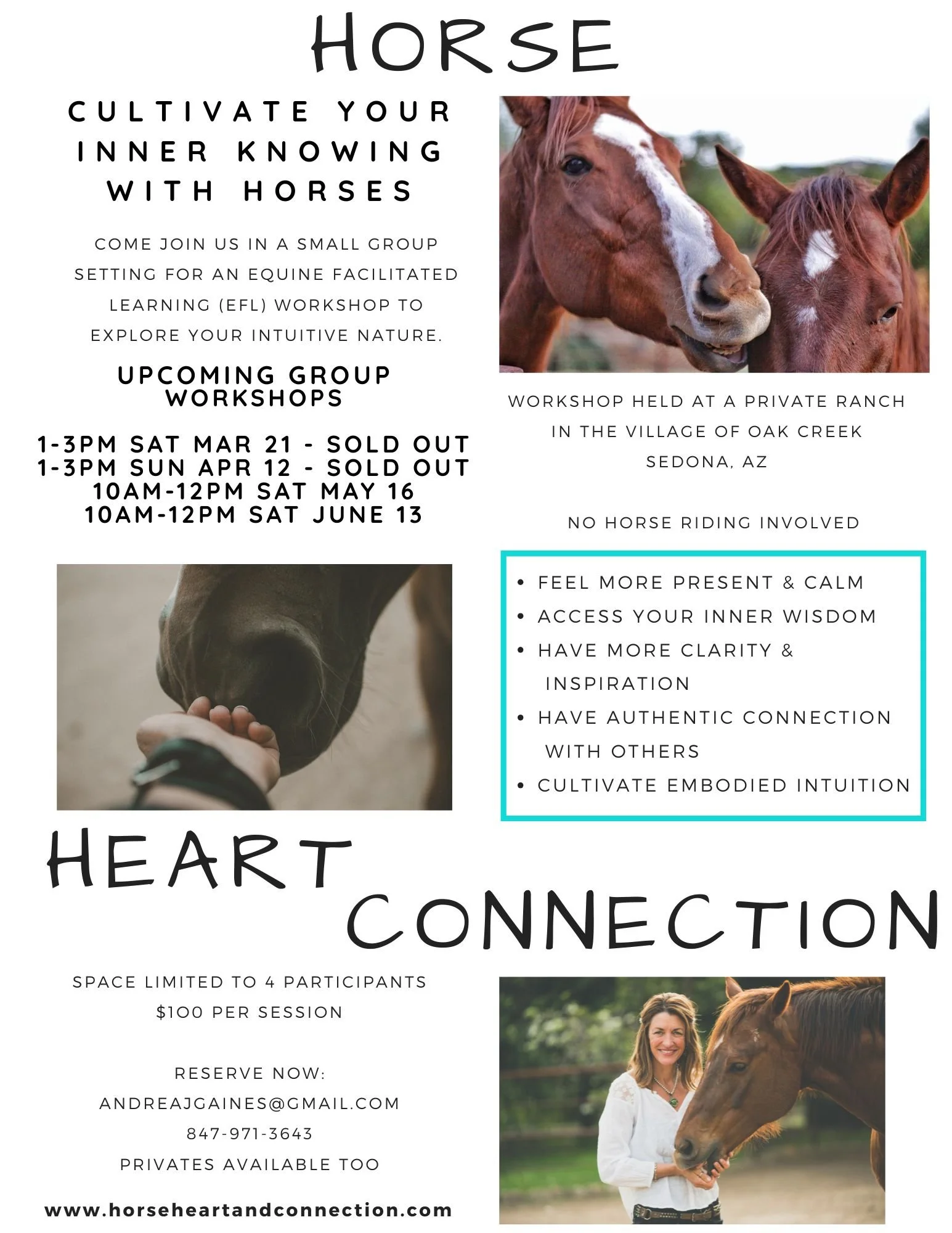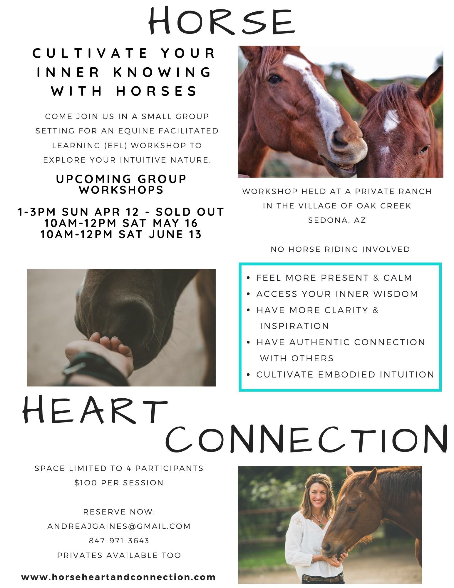 To have the opportunity to work with Andrea and her horses amongst the incredible energies of Sedona is such a blessing and unlike anything I’ve experienced anywhere else. PLEASE, give yourself this gift that will last within you, well beyond the actual time you spend with Andrea, Red and Flash.”